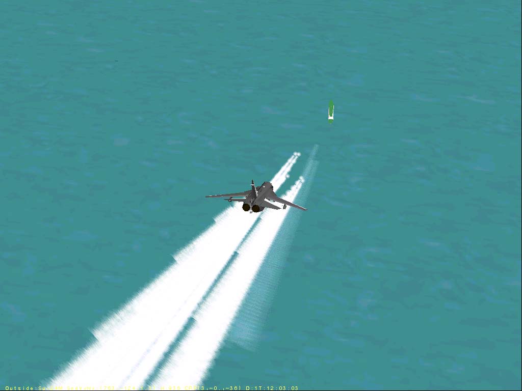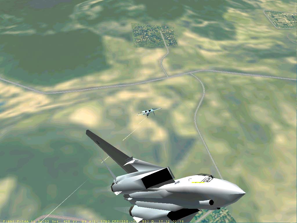 Most missiles in Flanker 2.0 are controlled by modern, realistic "proportional navigation" homing logic. They predict the flight path of the opponent and do NOT follow a lag pursuit trajectory that is easily outmaneuvered by "beaming" the missile. Defeating missiles with maneuvering is difficult and requires dramatic changes in altitude and relative direction (e.g. beam the missile and perform a split-S)....